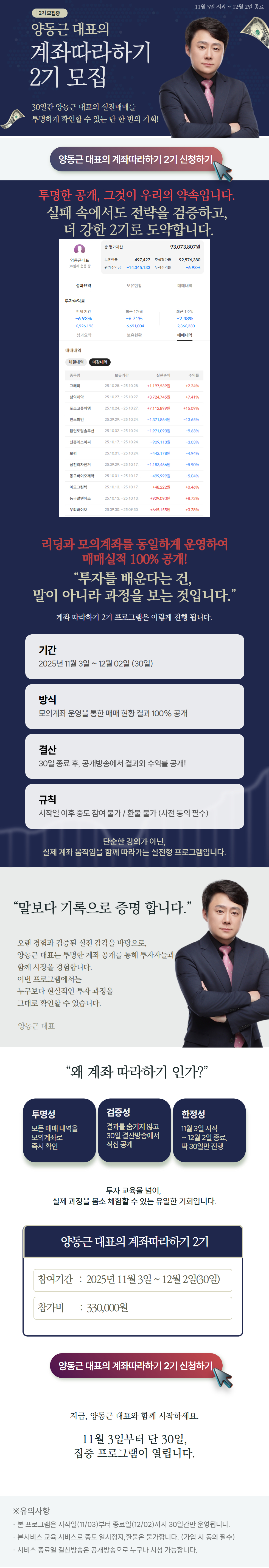 [계좌따라하기 1기 종료] 양동근 대표의 계좌따라하기 성과 공개 2기 모집!