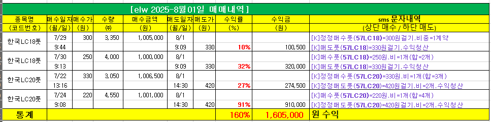 1일(금) elw 매매에서는 단타 매매로 160% 수익을 챙겼습니다.